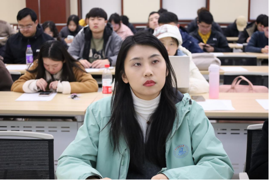 活動伊始,校基層治理研究會韓欣雨同志以《選調生政策賦能職業發展——從政策解讀到實戰備考》為題展開宣講。她介紹了選調生與公務員的異同、培養優勢及職業發展路徑,通過對比選調生四類招錄模式并結合各省報考案例與數據,進一步剖析了各省份的選調生招錄特點與競争趨勢。針對備考實戰,韓欣雨系統梳理了招錄流程及考核形式,并建議大家提早準備筆試和面試,善用校方資源及社會就業信息平台,多省報考以提升成功率,為基層治理注入青年力量。